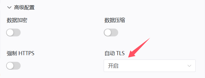 打开高级配置选项卡,将自动TLS设置为开启