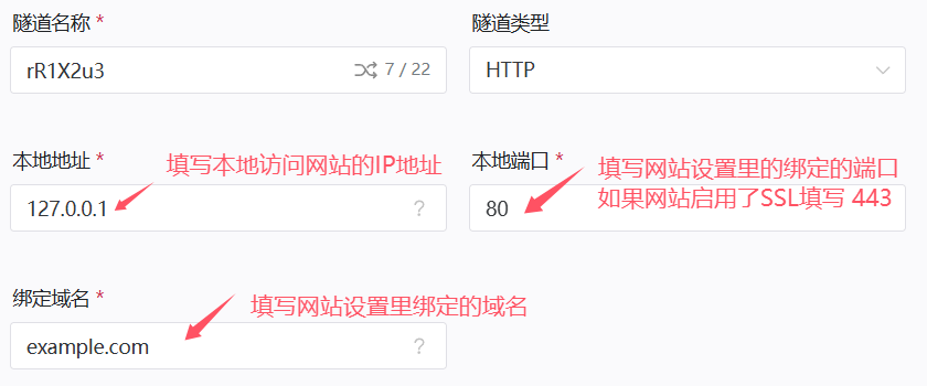 | 隧道类型 | 默认端口 | 访问方式 | 绑定域名 |