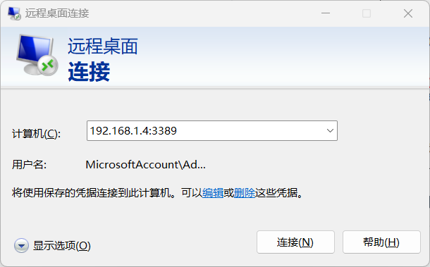 使用 远程桌面连接 访问 启用远程桌面的主机 ,确认能 成功连接 后,如图所示