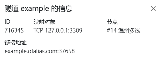 如下图所示,节点地址 是 example.ofalias.com,远程端口 是 37658